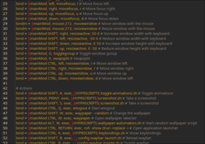 Archiin ja Fedoraan on ainakin kaksi Github-pohjaista asennusskriptiä (JaKooLit ja ML4W), joiden avulla käyttäjän on helppo asentaa itselleen Hyprland ja asennuksen jälkeen käyttäjällä on perustasolla toimiva ja tietyllä tavalla valmiiksi konfiguroitu Hyprland. Tämä on hyvä lähtökohta Hyprlandin käytölle, joskin konfigurointitiedostojen sisältö ja toimintatapa on hyvä sisäistää heti alkuun, jotta käyttäjä voi tuunata itselleen mieluisan työympäristön. Kummankin skriptin tarjoajan Github-sivulla on Hyprlandin asennusohje ja kummatkin ovat oman kokemukseni mukaan toimivia. Nykyiseen EndeavourOS-ympäristööni asensin Hyprlandin ML4W:n Githubista.