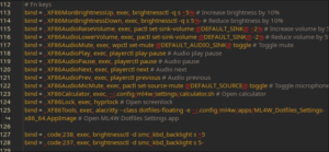 Konfigurointitiedostoissa määritellään näppäinyhdistelmät (bind), hiiren näppäimien toiminnot (bindm) sekä näppäimistön erikoisnäppäimet kuten äänenvoimakkuus, kirkkauden säätö yms. Näppäinyhdistelmien Mod-key on Windows-näppäin, sillä usein eri sovelluksissa pikanäppäimet toimivat Control- tai Alt-näppäimillä ja mikäli ikkunaympäristö hyödyntäisi samoja näppäimiä, olisi sekasotku valmis.
